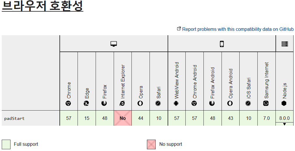 위 코드를 padStart()를 사용해야 할 페이지에 선언만 하면 실행 안 되던 브라우저에서도 정상적으로 사용할 수가 있습니다.