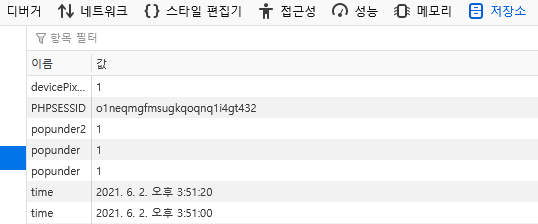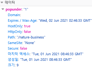 위에서 보이는 것처럼 popunder로 시작하는 이름의 하루 짜리 쿠키가 생성됩니다.
