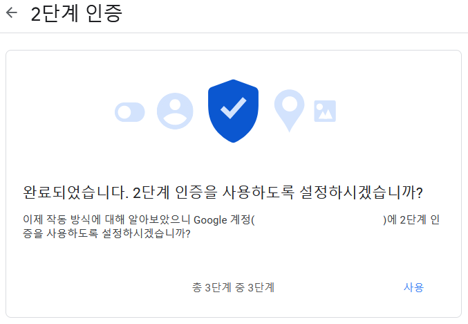 2단계 인증을 사용하겠냐고 묻는데 사용 클릭!