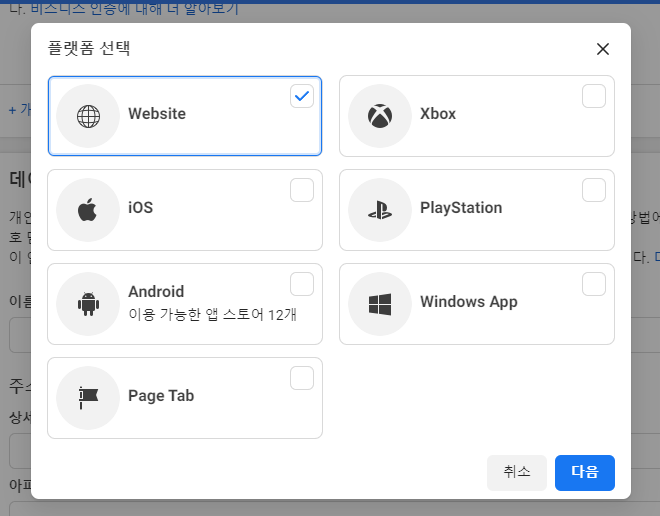 Website를 선택한 후 다음 클릭