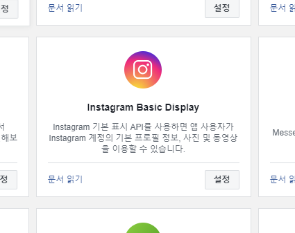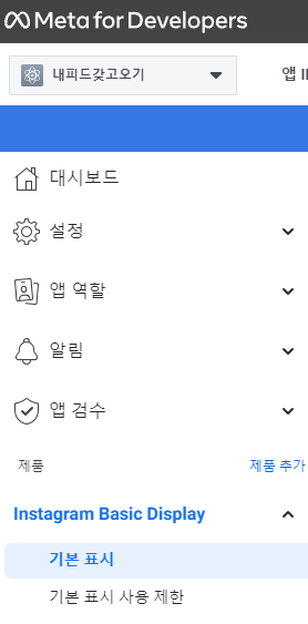이제 좌측 메뉴에서 Instagram Basic Display, 기본 표시를 클릭합니다.