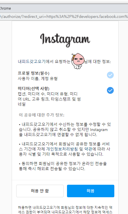 Generate Token 버튼을 클릭하면 위처럼 팝업이 뜹니다. 허용을 클릭하시면 됩니다.