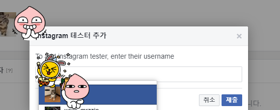 제출 버튼을 클릭하면 정상적으로 추가되고 자신의 인스타그램 앱 및 웹사이트 섹션에서 초대 관리를 확인하라고 합니다.