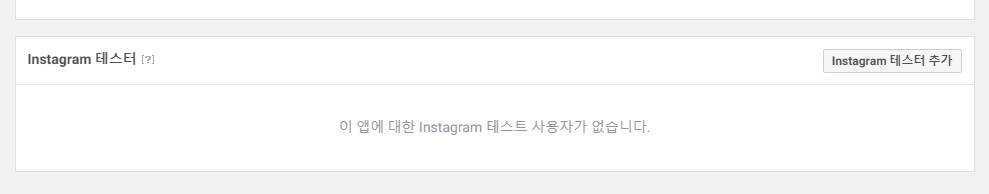 정상적으로 저장이 되었다면 페이지가 새로 나오고 화면 하단에 Instagram 테스트라는 항목이 있을 겁니다. 우측에 Instagram 테스터 추가 버튼을 클릭해서 자신의 인스타그램을 검색해서 추가하시면 됩니다.