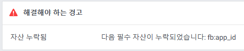 위에 보면 자산 누락됨이라고 되어 있는데 뭐 app_id는 제가 안 쓰기에 필요가 없으므로 패스!