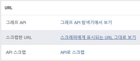 해당 페이지 가장 하단에 있는 '스크래퍼에게 표시되는 URL 그대로 보기를 클릭해 보시면 현재 페이스북 스크래퍼가 어떤 페이지를 긁어가는지 코드가 정확하게 나오니 참고하시면 될 것 같네요.