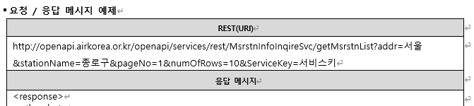 파싱을 할 주소는 위 방법대로 하셔도 되지만 제일 좋은 방법은 위 이미지를 보시면 참고문서라고 된 게 있습니다. ms-word 파일인데 그 파일을 다운로드 후 열어 보시면 아래 이미지처럼 된 부분이 있습니다.