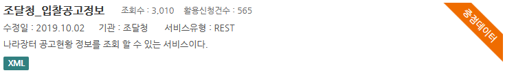 우선은 나라장터는 국가에서 운영(맞나요?)하는 데고 그러면 API가 존재할 거라고 확신(!!)을 하고 공공데이터포털을 뒤집니다.