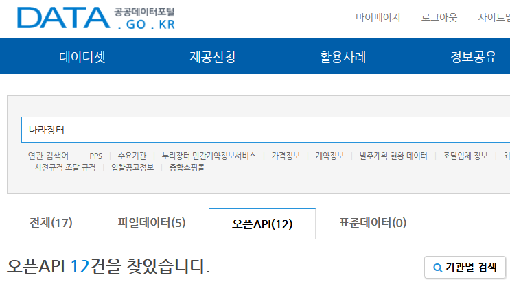 총 17건이 나왔고 오픈API에 12건이나 있다고 합니다.