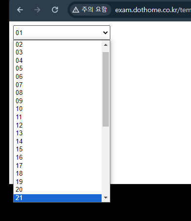 위와 같은 태그가 있습니다. option의 경우 50까지 있다고 가정을 합니다.