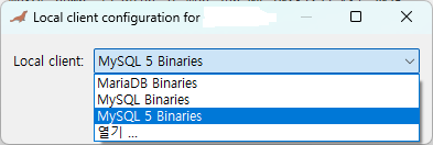 제일 밑에 있는 MySQL 5 Binaries를 선택하시면 정상적으로 디비 백업이 될 것입니다.